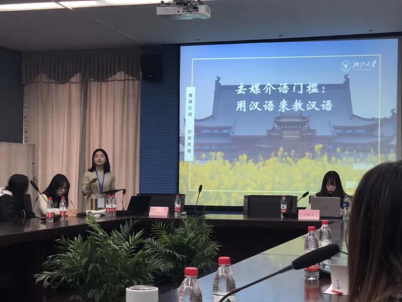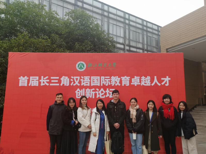2019年11月29日-12月1日,受“首届长三角汉语国际教育卓越人才创新论坛”邀请,色情小说 19级汉语国际教育硕士研究生及本科生代表一行共9人由张丽萍老师带队赴浙江金华浙江师范大学,参加了首届长三角汉语国际教育卓越人才创新论坛,19级汉硕研究生赵泽钞同学与汉语国际教育16级汉语国际教育本科生徐恬在论坛上作主题发言。