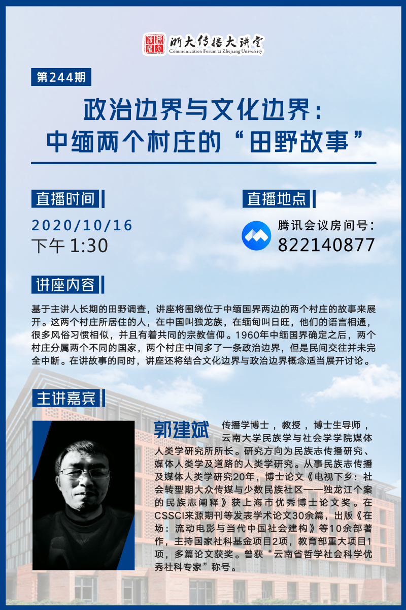 浙大传播大讲堂第244期:政治边界与文化边界:中缅两个村庄的“田野故事”
