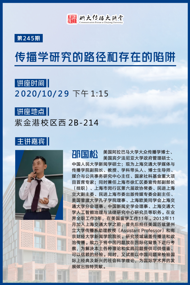 浙大传播大讲堂第245期:传播学院研究的路径和存在的陷阱