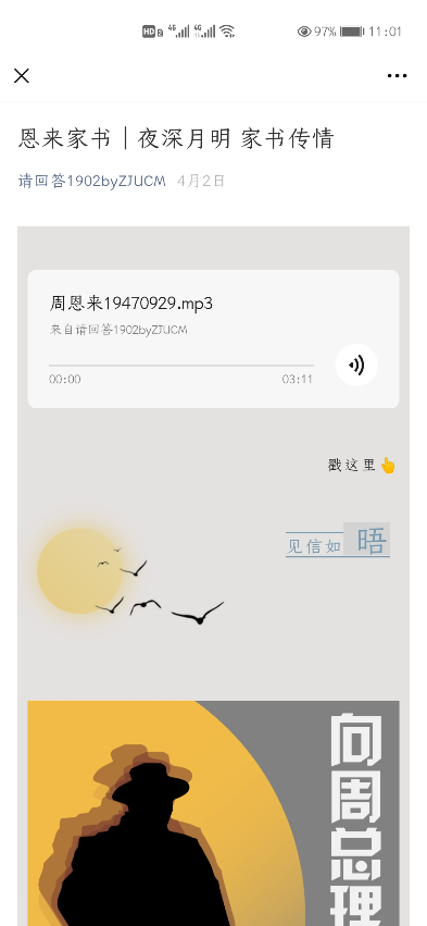 除了图文介绍,他们还精心制作了“恩来网络视频”,其中便包含了主题微课和影视剪辑等等。这些成果发布在了班级微信公众号、B站、微博等多渠道的社交平台上,供全国各地的人们学习使用。他们的创建,真真切切地提高了社会影响力,起到了服务社会的作用。