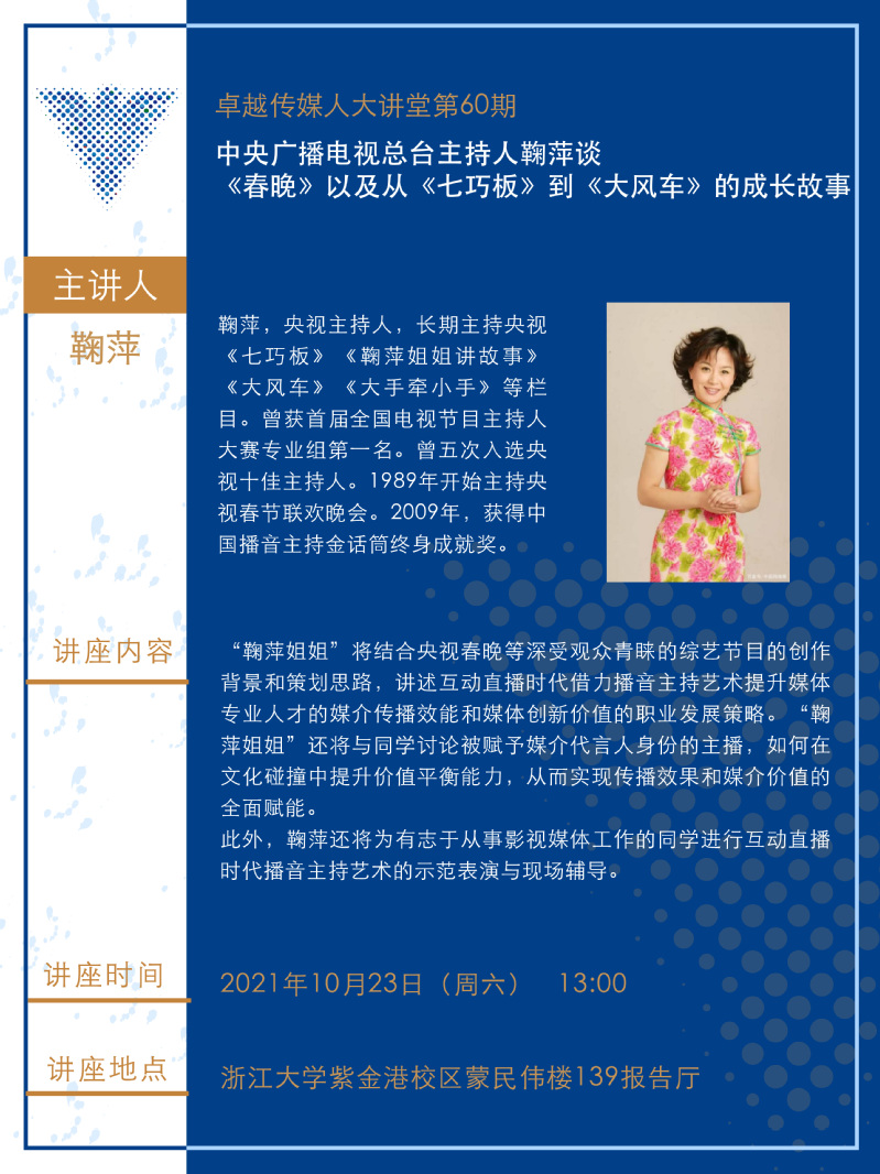 卓越传媒人大讲堂第60期:中央广播电视总台主持人鞠萍谈《春晚》以及从《七巧板》到《大风车》的成长故事