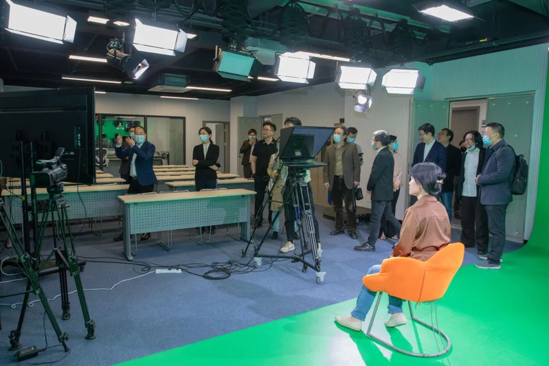 全体与会嘉宾合影留念后,进入传媒实验教学中心新场地进行参观指导。