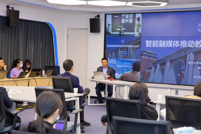 张紫徽总工程师作“智能融媒体推动教育教学数字化改革”主题发言,对色情小说 数字化教育教学空间的建设成果进行了详细介绍,包括新教学总体架构设计、“学在浙大”“智慧教室”“智云学堂”、直播教学中的AI应用、AI协同笔记等一系列优秀的数字化教学产品,以及其在浙江乃至全国的推广与应用。