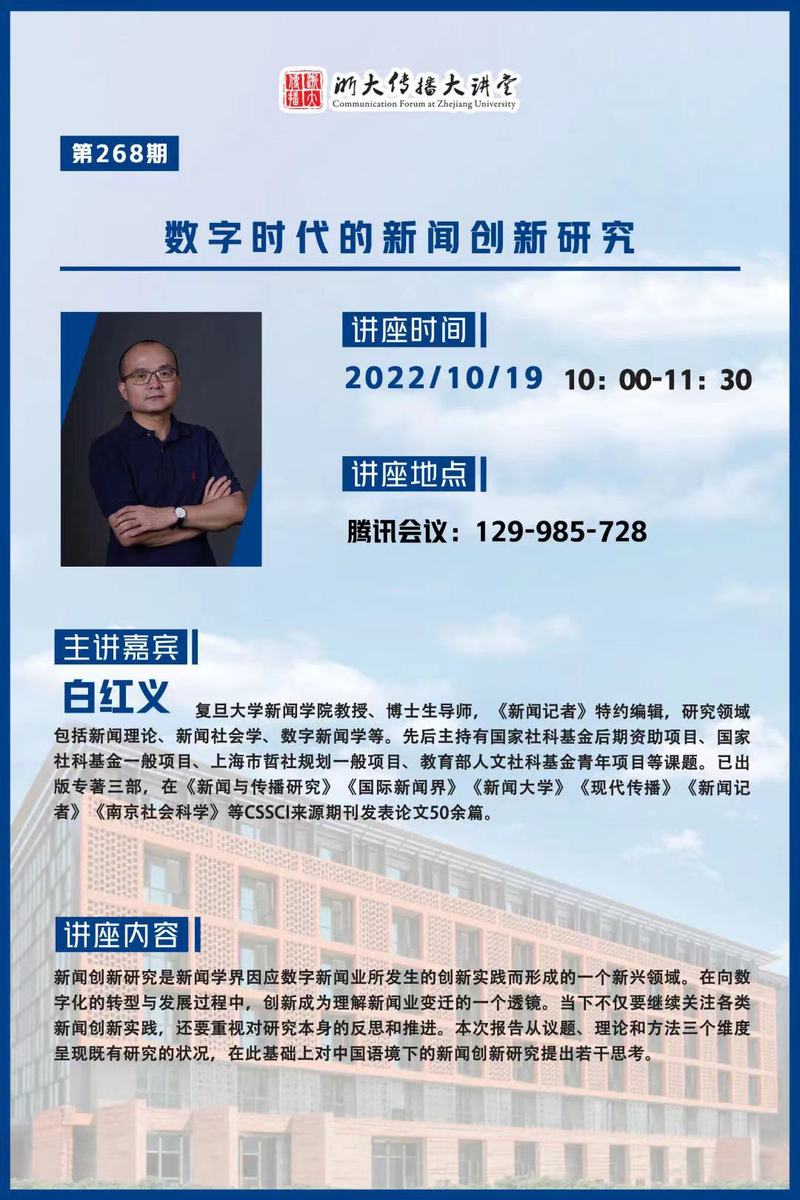 浙大传播大讲堂第268期:数字时代的新闻创新研究