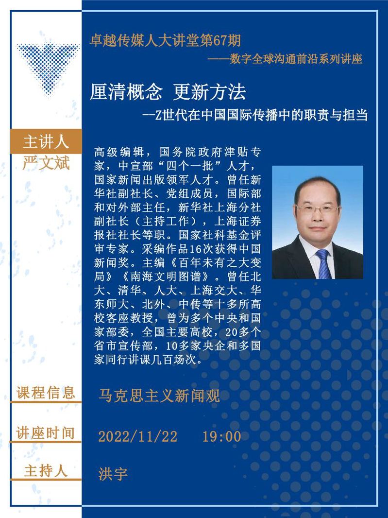 卓越传媒人大讲堂第67期:厘清概念 更新方法——Z世代在中国国际传播中的职责与担当