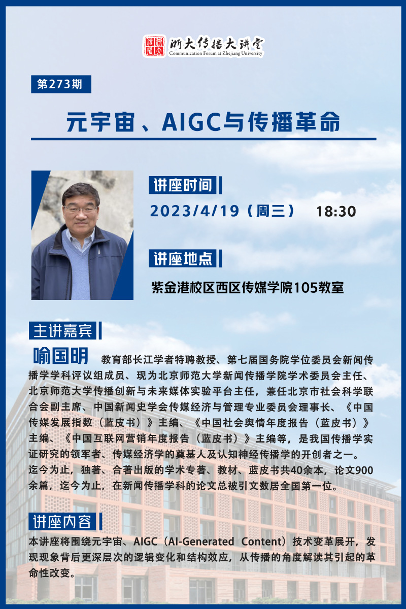浙大传播大讲堂第273期:元宇宙、AIGC与传播革命