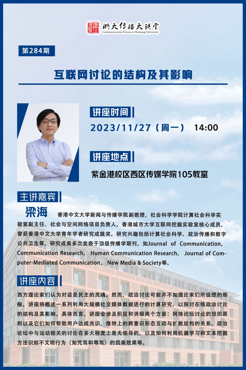 浙大传播大讲堂第284期|互联网讨论的结构及影响