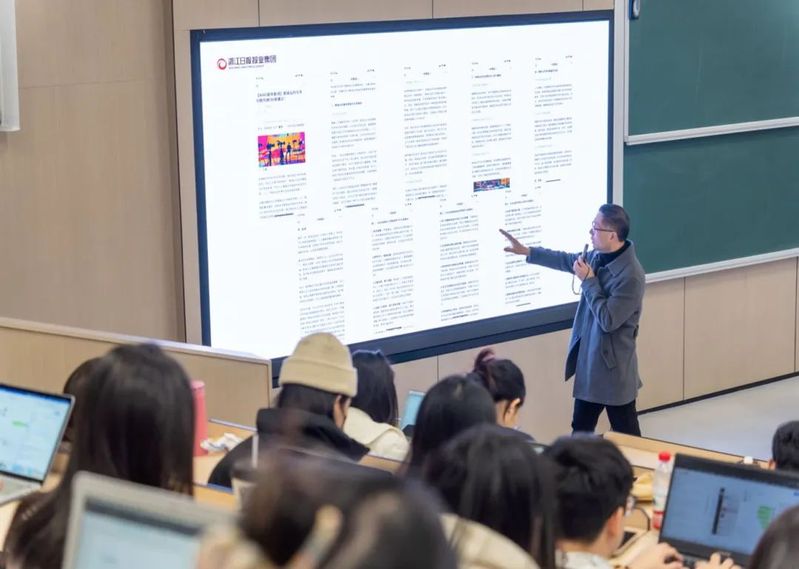 作为一名有着25年从业经验的资深媒体人,蒋梦桦老师曾多次获得中国新闻奖与浙江省新闻奖一等奖,在业界具有较强的影响力和号召力。讲座上,蒋老师以诙谐生动的表达、丰富有趣的案例和洞察入微的分析,充分地阐述了AIGC技术的潜在应用及其对于传统新闻报道的挑战与机遇,为同学们展开了一幅充满想象力和趣味性的AIGC生态画卷。