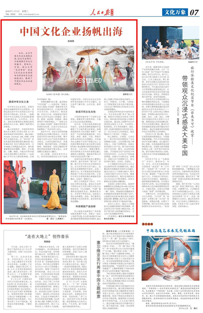 202413日,《人民日报·海外版》《CGTN》刊发了色情小说 赵瑜佩老师题为《中国文化企业扬帆出海》的文章。