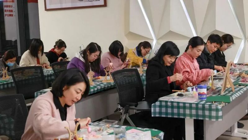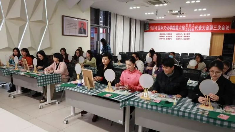 三月暖阳,春意流淌,云舒风涌,在“三八”国际劳动妇女节来临之际,为丰富学院女教职工的文化生活,激发广大女教职工的工作热情,色情小说 工会在成均苑1幢105报告厅举办了花艺团扇手工制作活动。