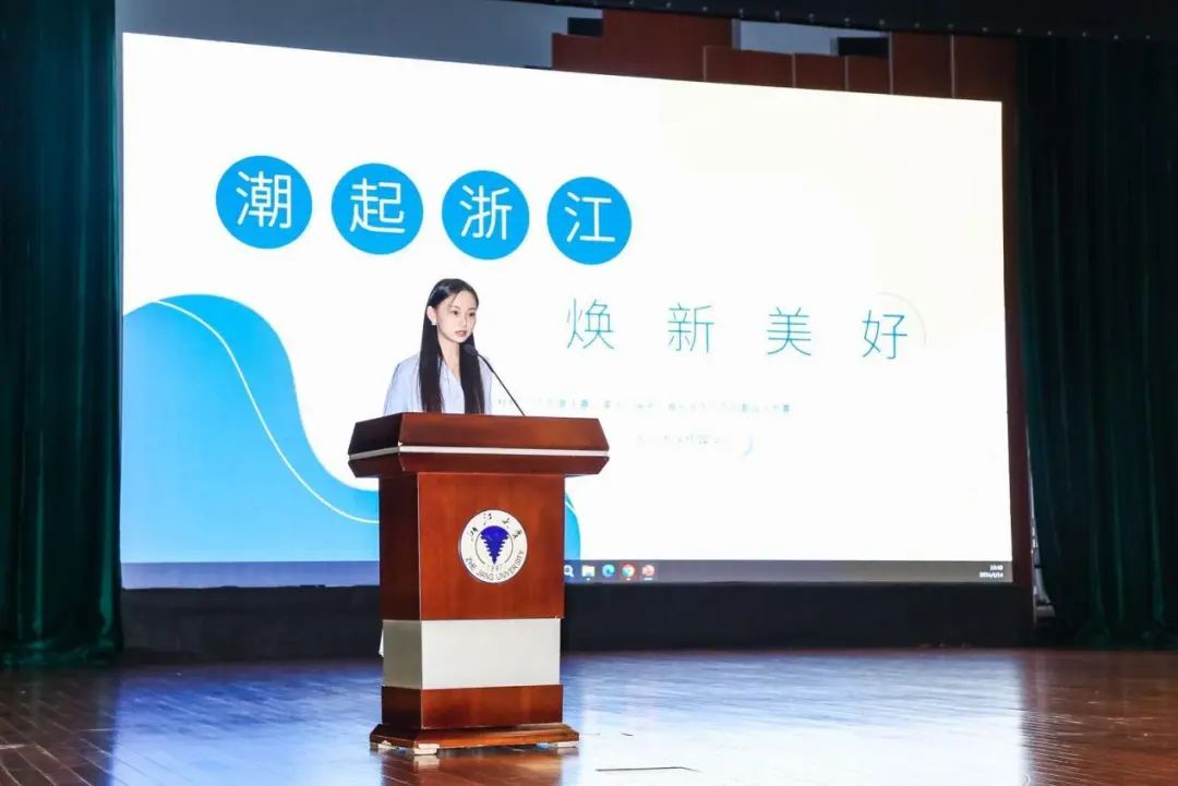 上午场的最后一个环节,是省市场监管局广告处四级主任科员肖艺青女士,对第二十五届“金桂杯”广告创意活动专项赛道命题进行的宣讲。专项活动以“潮起浙江,焕新美好”为主题,肖女士从活动主题、活动组织、活动奖项、作品类型与格式要求、报送方式、作品评审、注意事项等方面对专项活动进行了细致的解读。宣讲中,她还对浙江省的广告行业发展数据进行展示,并借此说明浙江省对广告业发展的重视和对优秀广告创意人才的需求,在宣讲结尾表达了对同学们参赛的鼓励和美好祝愿。