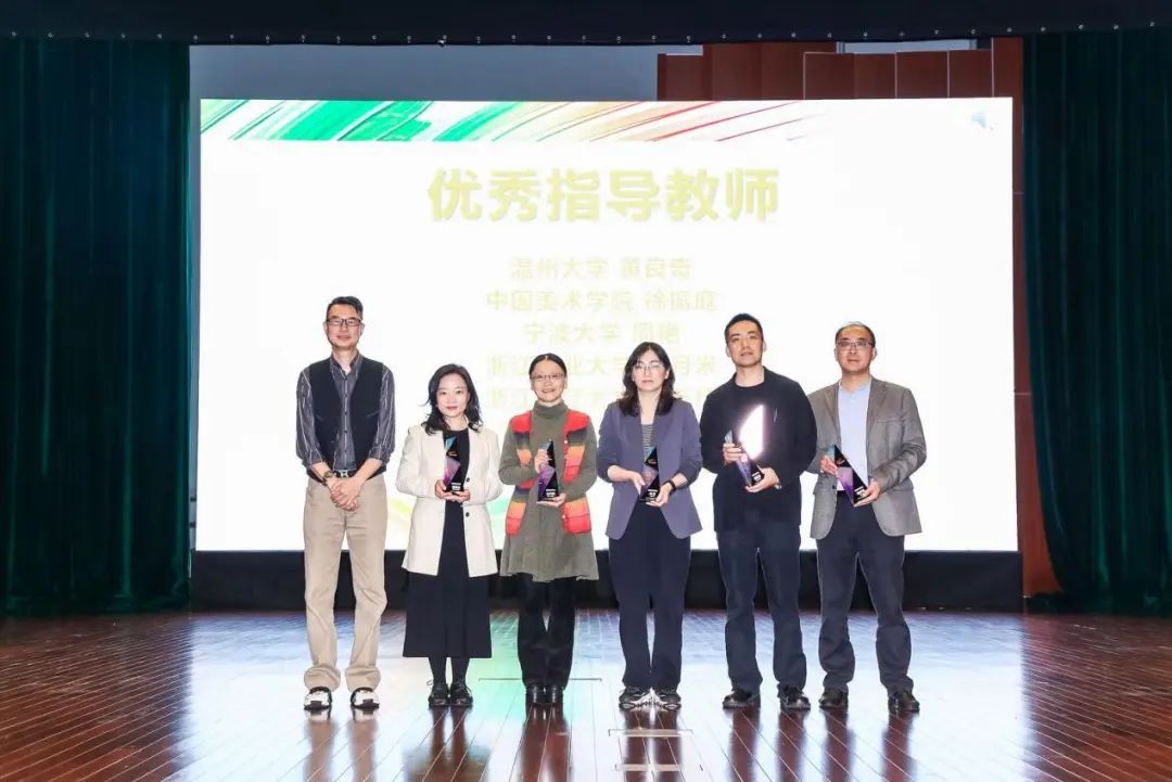 最后由杨海标先生为获得优秀指导教师称号的指导老师颁发奖项,分别是温州大学的黄良奇老师、中国美术学院徐振庭老师、宁波大学的周艳老师、浙江工业大学吕月米老师、浙江师范大学林友桂老师、浙江理工大学刘洁老师、浙江工商大学张丽洁老师。