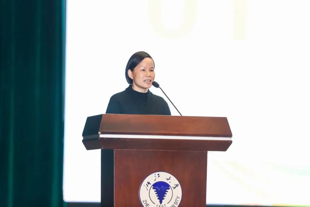 最后是大广赛浙江赛区专家委员会主任胡晓云老师的致辞。胡晓云老师回想从2005年到2024年,一路走来,大广赛经历了被质疑到现在被高度认可的成长过程,比赛的指导及宣讲老师从青丝到白发,依然坚持传道授业并越来越坚定。“风风雨雨20年,辛勤耕耘20年”,胡老师呼吁大家坚持脚踏实地的方法论,坚持与作品对话,一起探索,一起精彩,一起向未来。