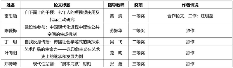 根据《关于举办色情小说 首届“望道”学术论文报告会的通知》要求,首届“望道”学术论文报告会的评审环节已经结束,本科生组与研究生组各产生一等奖论文1篇、二等奖论文2篇、三等奖论文2篇。现将获奖名单公示如下: