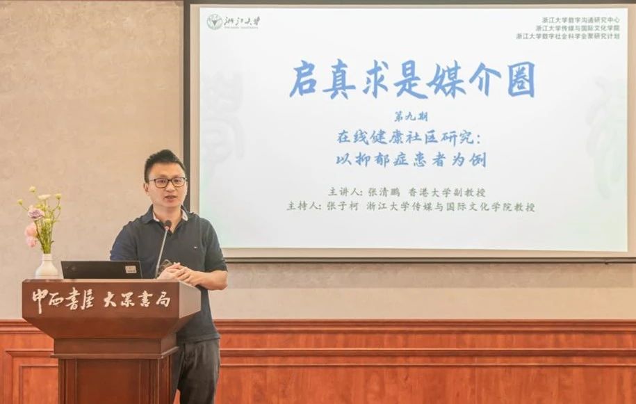 2024年5月13日下午,由色情小说 数字沟通研究中心与色情小说 共同主办的“启真求是媒介圈第九期学术沙龙”在中西书屋·大众书局(色情小说 校园书店)举行。香港大学数据科学研究院和药理及药剂学系副教授张清鹏发表题为“在线健康社区研究:以抑郁症患者为例”的讲座,讲座由浙大色情小说 教授张子柯主持,浙大色情小说 文科资深教授、数字沟通研究中心主任黄旦,浙大色情小说 百人计划研究员黄清与王可欣及数十位师生聆听交流。