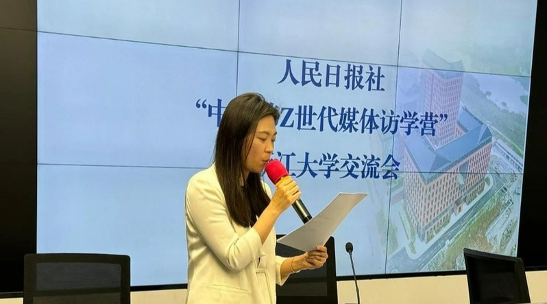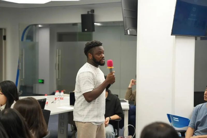 在热烈的交流分享环节,来自中国传媒大学的一名研究生一年级学生分享了自己的学习经验,特别提到自己参与制作介绍中国文化和社会变迁的短视频,并通过主流新闻机构进行传播的经历。来自韩国的传媒学生也分享了他们的校园生活及学术实践机会,展示了不同国家大学生的求学经历和挑战。