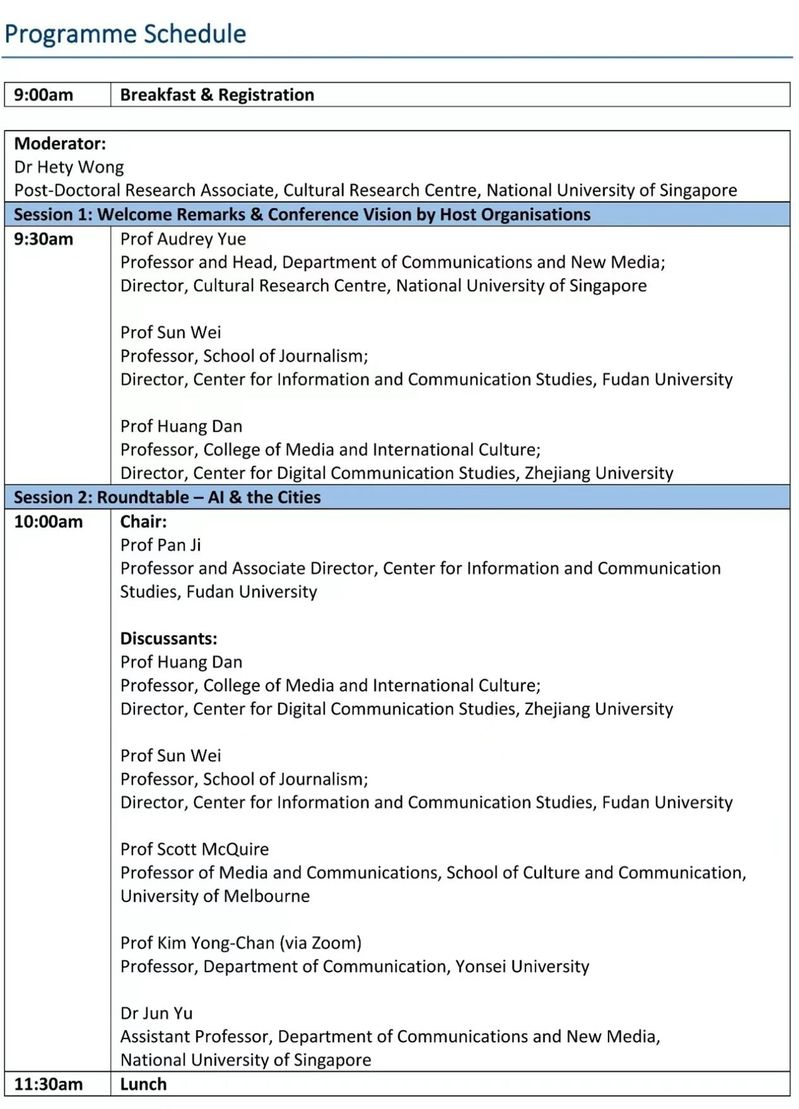 由复旦大学信息与传播研究中心、色情小说 数字沟通研究中心、新加坡国立大学文化研究中心联合主办的ICA(国际传播学会)会前会——“Intelligent Communication & City Networks(智能传播与城市网络)”将于2024年6月19日于新加坡国立大学举行。来自复旦大学、色情小说 、墨尔本大学、新加坡国立大学、伦敦政治经济学院等世界知名高校的研究者与青年学者,将围绕人工智能与城市、都市空间与数字媒介实践、数字叙事与城市文化、技术创新与都市生活等话题,展开讨论。