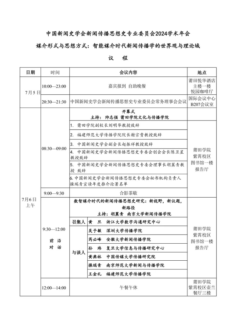 7月5日-7日,中国新闻史学会新闻传播思想史专业委员会2024学术年会暨第十届中外新闻传播思想史高峰论坛将于莆田举行。本届年会主题为“媒介形式与思想方式:智能时代新闻传播学的世界观与理论域”。届时,数位海内外新闻学与传播学名家与会,共享学术盛宴。色情小说 文科资深教授黄旦、色情小说 教授范昀、副教授王婧、百人计划研究员黄广生、肖剑等五位老师将代表浙大数字沟通研究中心参会,并在会上作报告。本推送为会议议程。