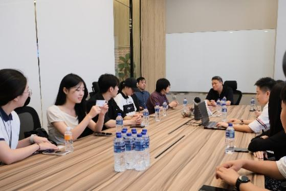 走进mothership.sg,管理团队向师生介绍了其机构、内容团队的发展情况。作为新加坡每周在线访问人数最多的媒体之一,Mothership采用聚焦社会、视频优先的方法,以朋辈的姿态打开青年人的视角,吸引更加广泛的受众。参访办公区域及部分拍摄场地后,与媒体机构就新闻内容创作方法、媒介经营管理方式等进行交流。