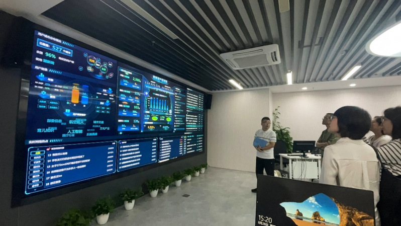 最后,调研组参观了传播大脑。作为在省委宣传部指导下牵头组建的省域媒体融合技术基座,传播大脑致力于构建全省媒体融合发展的统一技术平台和对外展示窗口。该平台自主研发的“传播大模型”,体现了对媒体行业的深度理解,在媒体内容的生产、审核、分发运营以及创新应用等方面展现出巨大潜力,为媒体融合提供了强有力的技术支撑。