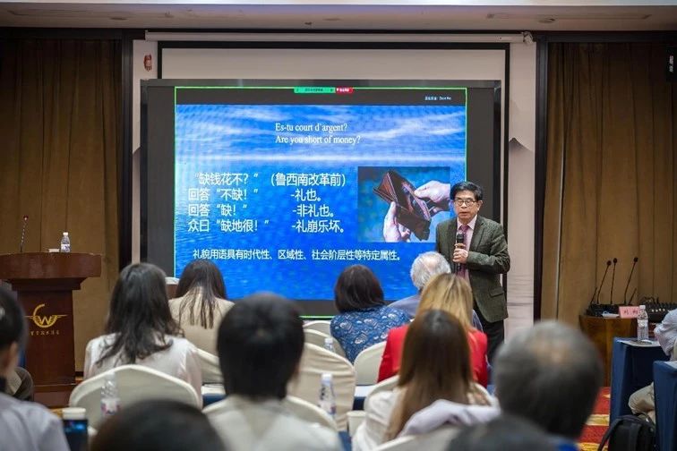 中国海洋大学李志清教授围绕《礼貌用语与教材编写——从“缺钱花不”谈起》作主旨演讲。他由改革前山东西南地区的问候语“缺钱花不”谈起,指出礼貌用语具有时代性、区域性、社会阶层性等特定属性。通过举例分析coucou是否能代替salut、tchao是否能代替au revoir进入教材,李志清教授指出,将礼貌用语纳入教材时需做到以下几点:从初次见面礼貌用语逐步过渡到比较熟知的礼貌用语;教材主要使用有一定距离感的礼貌用语;鉴于教材的受众,通用教材的唯一目的是教授学生规范交际。
