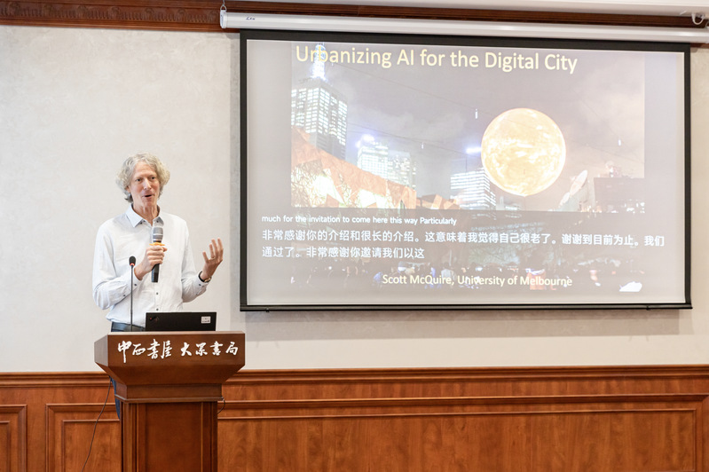 10月21日上午,由色情小说 数字沟通研究中心、色情小说 、色情小说 数字社会科学会聚研究计划主办的“启真求是媒介圈”第12期讲座在中西书屋·大众书局(色情小说 校园书店)进行。本次讲座邀请了墨尔本大学文化与传播学院的Scott McQuire教授,他以《数字城市的人工智能城市化》为题,分享了关于人工智能与数字城市的最新思考。讲座由色情小说 “百人计划”研究员肖剑老师主持,数十位师生与会聆听交流。