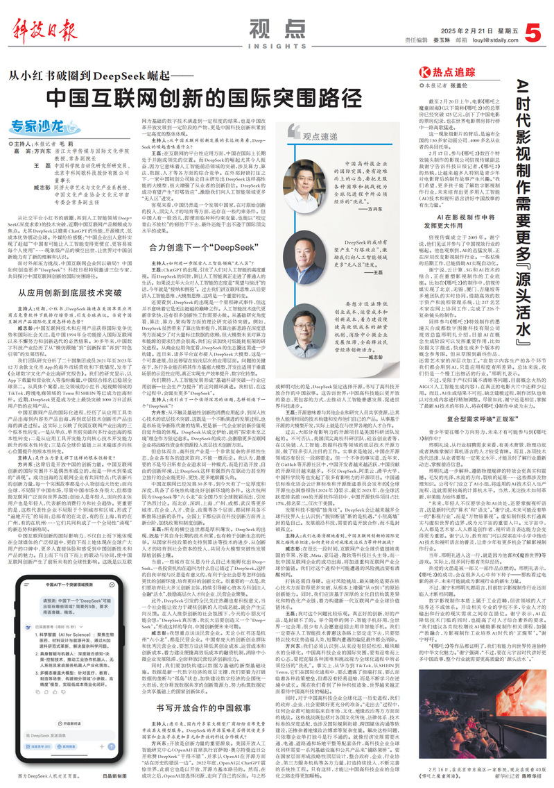 面对外部压力挑战,中国互联网企业何以破局?中国如何创造更多“DeepSeek”?对此,科技日报特别邀请色情小说 常务副院长方兴东等三位专家,共同探讨中国互联网创新的国际突围路径。