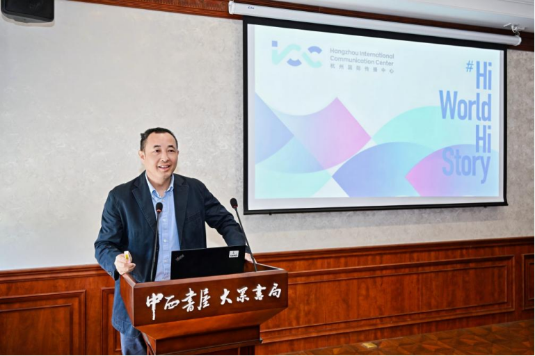 浙江省记协国际传播专业委员会副主任委员姜贤正以《从中国出发的全球观,从世界归来的Hangzhoufeel》为题,从打响“一个品牌”、做强“两大平台”、用好“三船出海”、做好“四篇文章”等方面详解杭州国际传播中心的发展策略。通过“五千年中国看杭州”“杭州老友记”等项目,将产业、文化与政策优势转化为国际传播优势,打响品牌、做强平台,推动杭州故事走向世界。