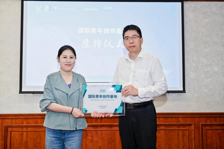 随后,方兴东与蒋蕴共同为“国际青年创作基地”揭牌,标志着浙江省国际传播中心与学院的合作迈入新阶段。