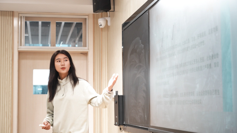 随后,课程又结合了钱学森的科学家精神、张秉贵的劳模精神等故事,启发学生从榜样中汲取力量。台下学生在倾听前辈职业故事的同时,有了更深刻的感悟:一份职业所承载的,远不止个人的成长与发展,更包含着沉甸甸的家国使命。