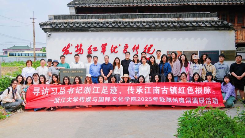 As spring deepened on April 18, faculty and student Party members from the College of Media and International Culture traveled to Nanxun, a picturesque water town in Huzhou, for a Party-building initiative titled Tracing General Secretary Xi's Footsteps in Zhejiang, Inheriting the Red Legacy of Jiangnan's Ancient Towns. Known as the Crystal-Clear gem of Jiangnan, Nanxun is not only a cultural treasure but also a revolutionary stronghold where red heritage thrives. Walking through timeworn alleyways, the group immersed themselves in the stirring history of Communist fighters, listening to echoes of revolutionary flames beneath the arched eaves of canals. The experience prompted deep reflection on how media professionals should leverage their expertise to safeguard this legacy and uphold integrity in their work.